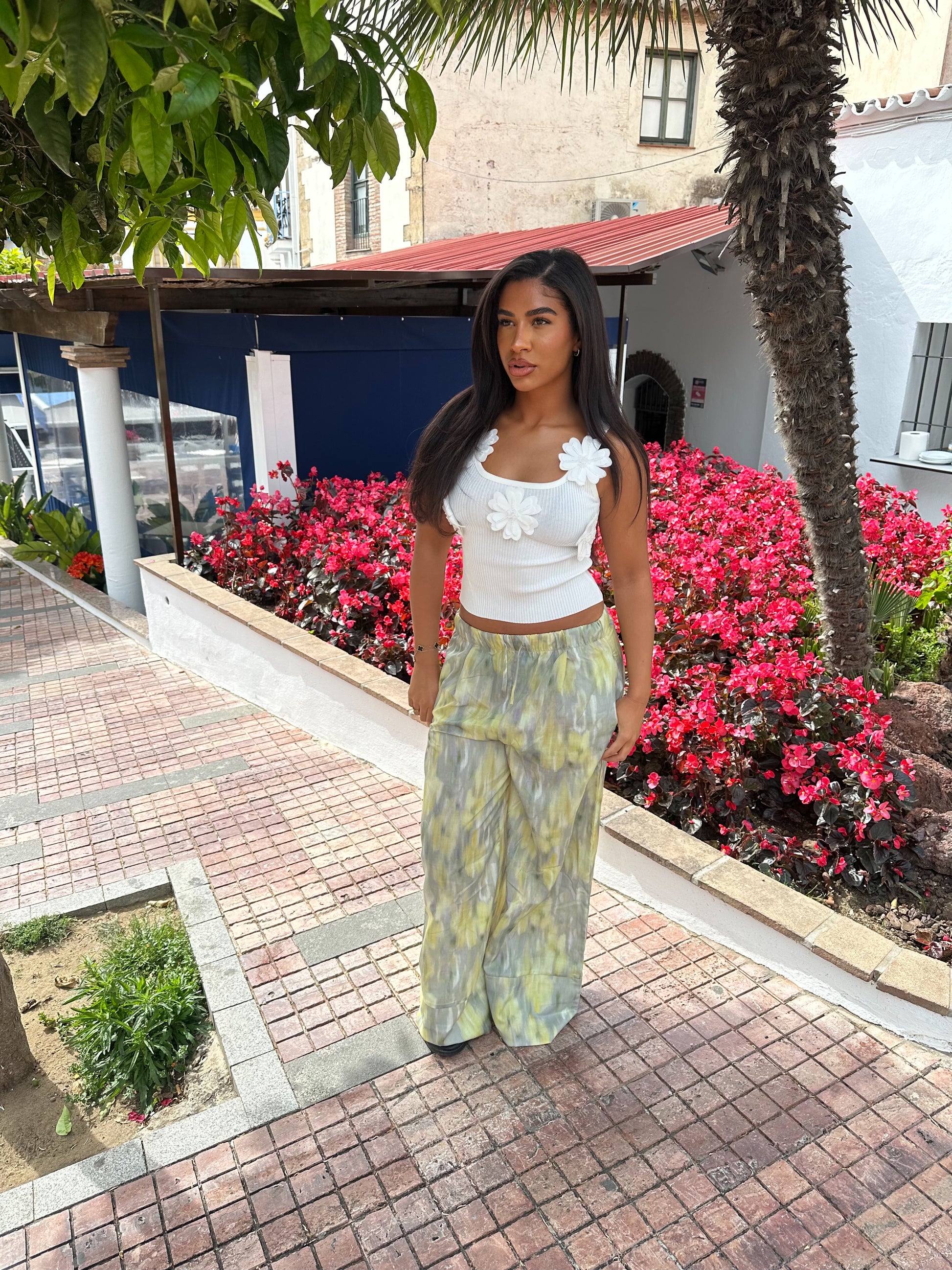 Step into summer with these trendy wide- leg pants! featuring a vibrant tie dye print in a yellow and green shade, perfect for beach days or casual outings in the warmer weather. With a relaxed fit and elastic waistband they ensure not only style, but comfort also.
